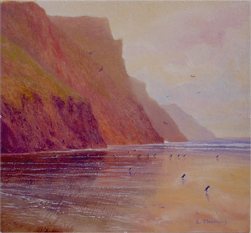 Oystercatchers, Rhossili – oil on board